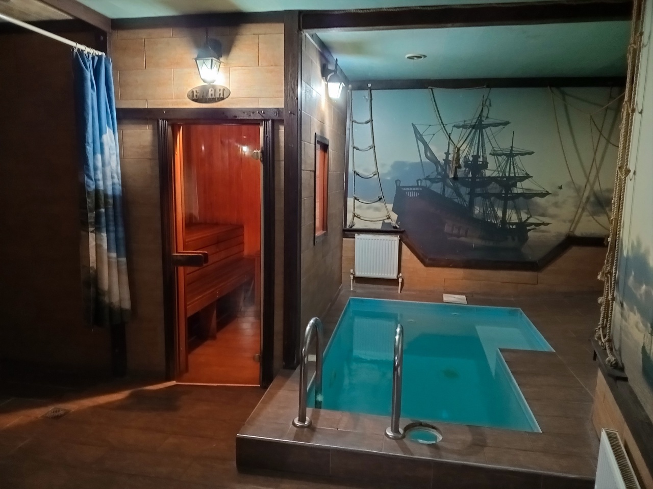Коттедж " Альпийское шале " одноэтажный со вторым светом . 2 спальни ( двухспальная кровать и двух ярусная кровать + печка лежанка ) Коттедж " Веселый роджер " 2-х этажный ( на первом этаже двух ярусная кровать...на втором три широкие кровати ) Во всех домах теплые полы .Сауны с бассейнами . Закрытые территории с разными ландшафтными работами . Беседки с камином-барбекю . Также зоны под казан . Летом озера водопады и фонтаны.